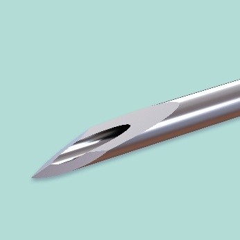 Hochpräziser 5-Flächen-Facettenschliff. Progressiver Schneidwinkel für geringere Einstichkraft, stabile Injection Force, sauberer Einstich, reduziertes Partikelrisiko.