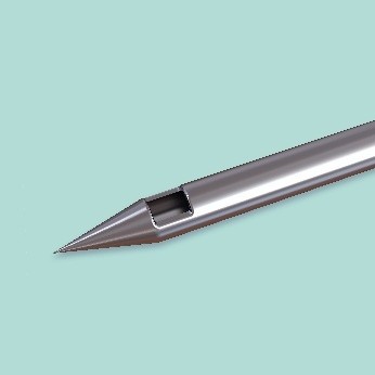 Stanzfreie, abgerundete Spitze mit seitlichem Schlitz. Minimalinvasiv, reduziert Gewebetrauma.